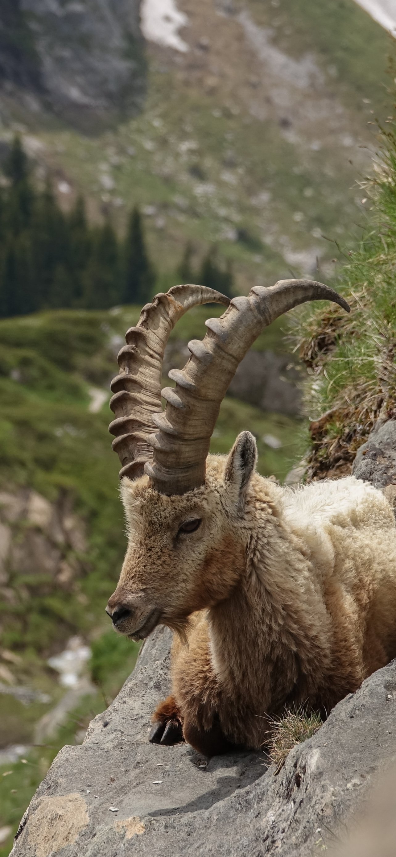 Обои: дикий козел, скала, обрыв, высота - 1284x2778