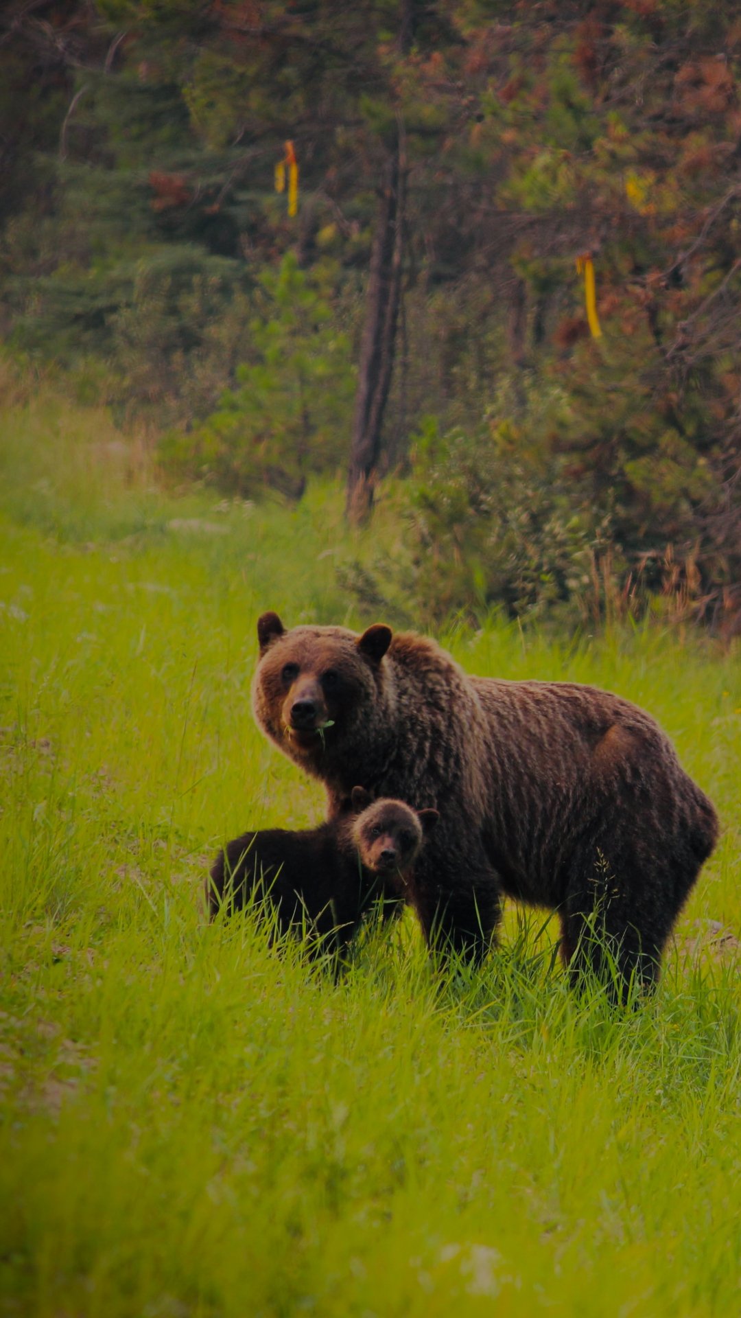 Обои: дикий лес, медведица с медвежатами - 1080x1920