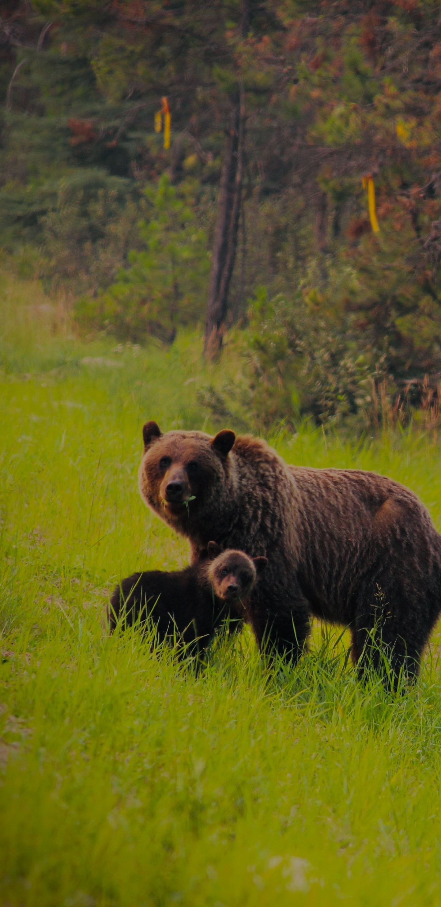 Обои: дикий лес, медведица с медвежатами - 1440x2960