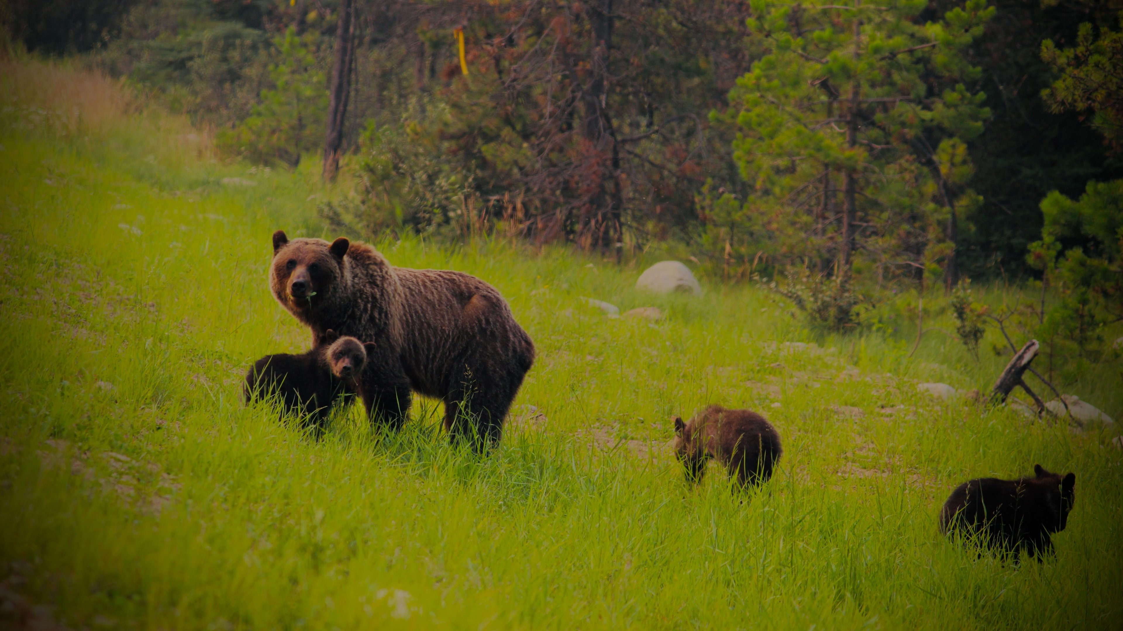 Обои: дикий лес, медведица с медвежатами - 3840x2160