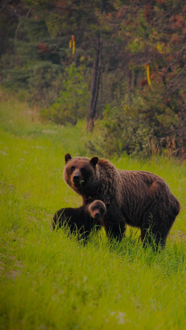 Обои: дикий лес, медведица с медвежатами - 640x1136