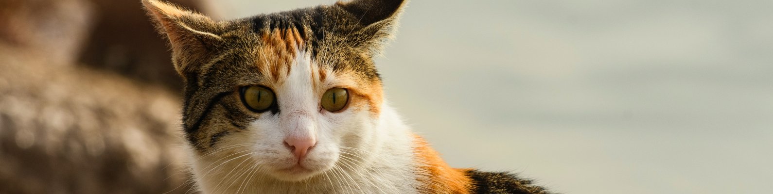 Обои: домашняя кошка, домашний питомец, желтые глаза - 1590x400