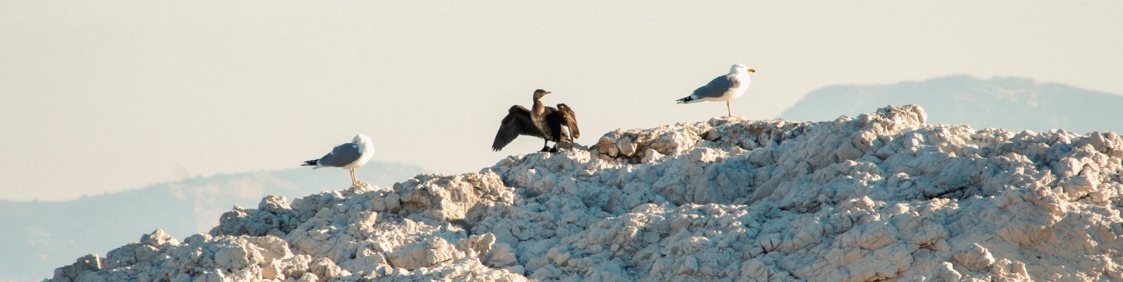 Обои: птицы, чайки, скалы, горный хребет - 1590x400