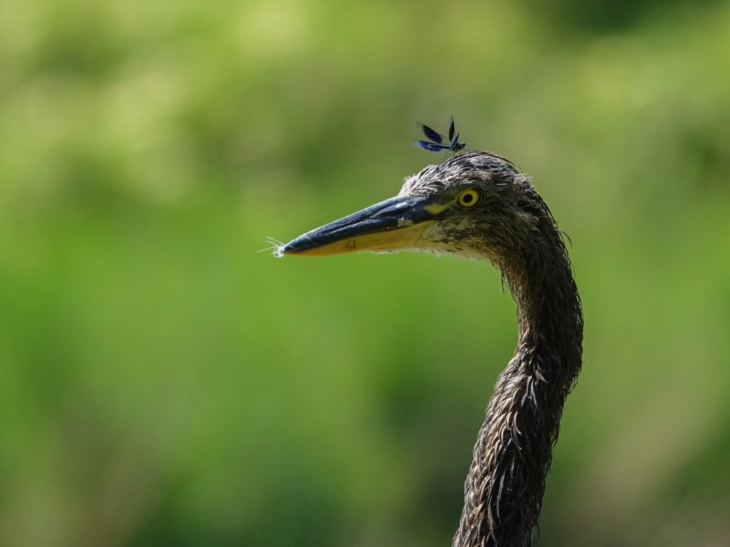 Обои: птица, желтые глаза, насекомое - 1024x768