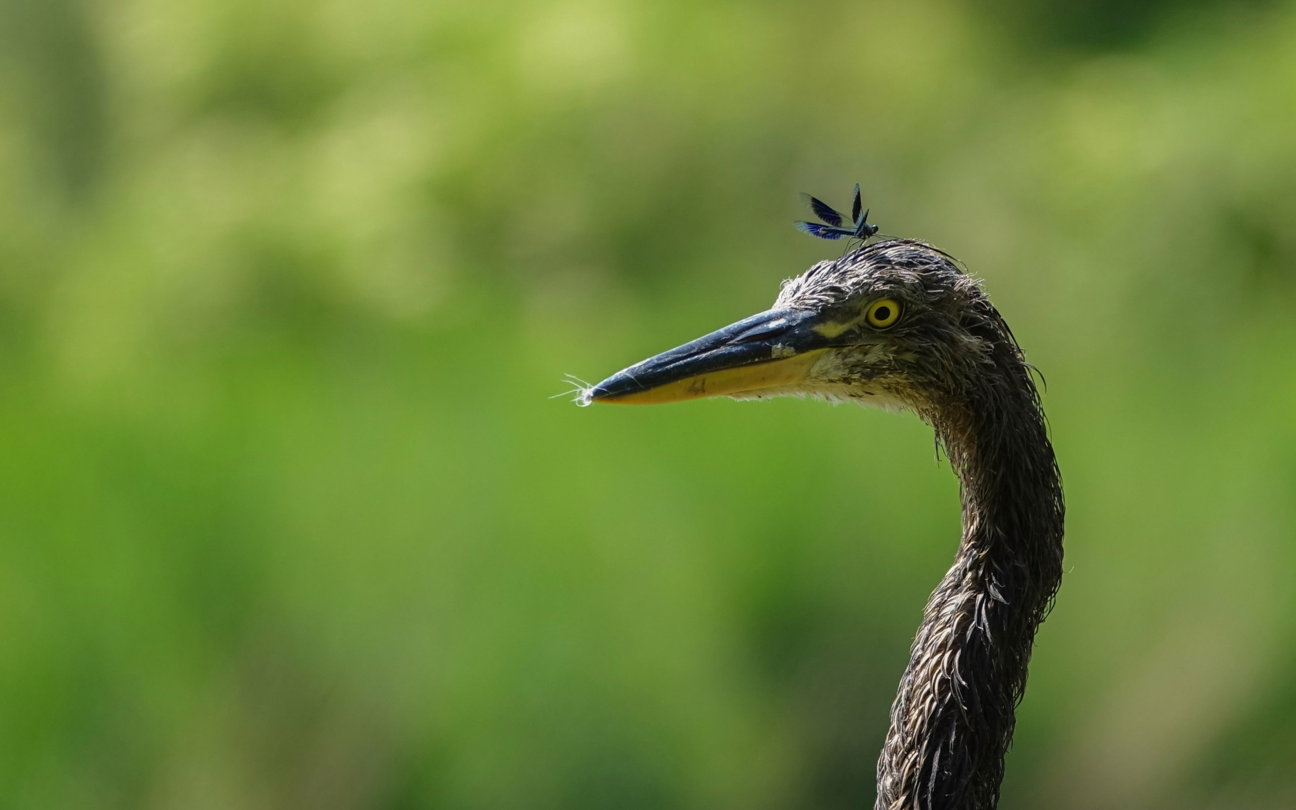 Обои: птица, желтые глаза, насекомое - 2560x1600