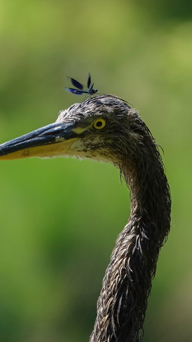 Обои: птица, желтые глаза, насекомое - 750x1334