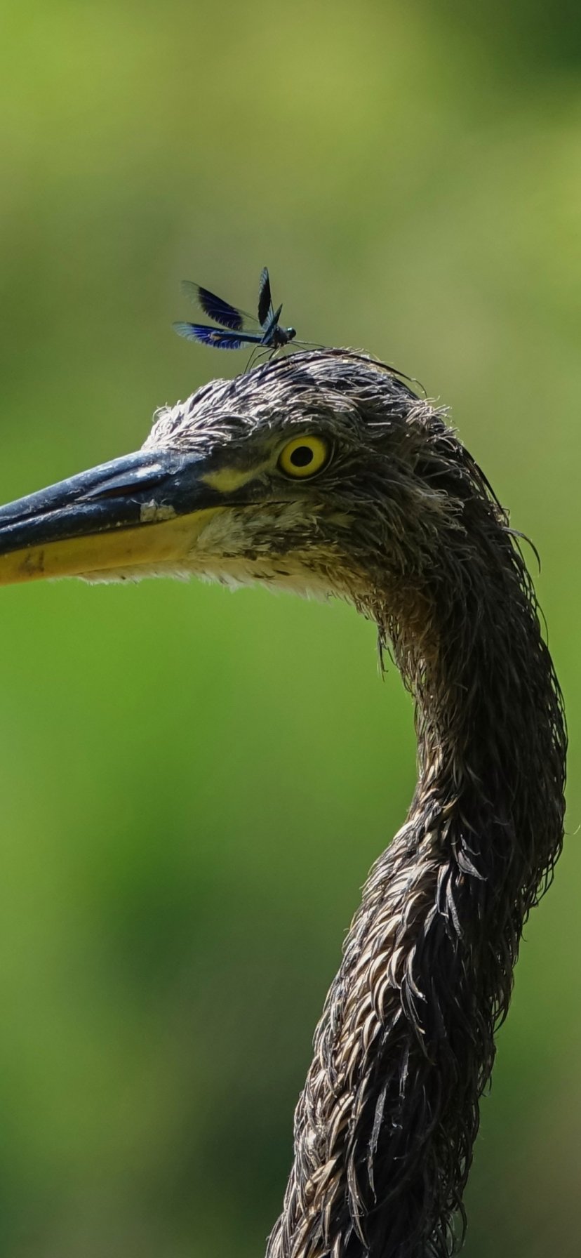 Обои: птица, желтые глаза, насекомое - 828x1792
