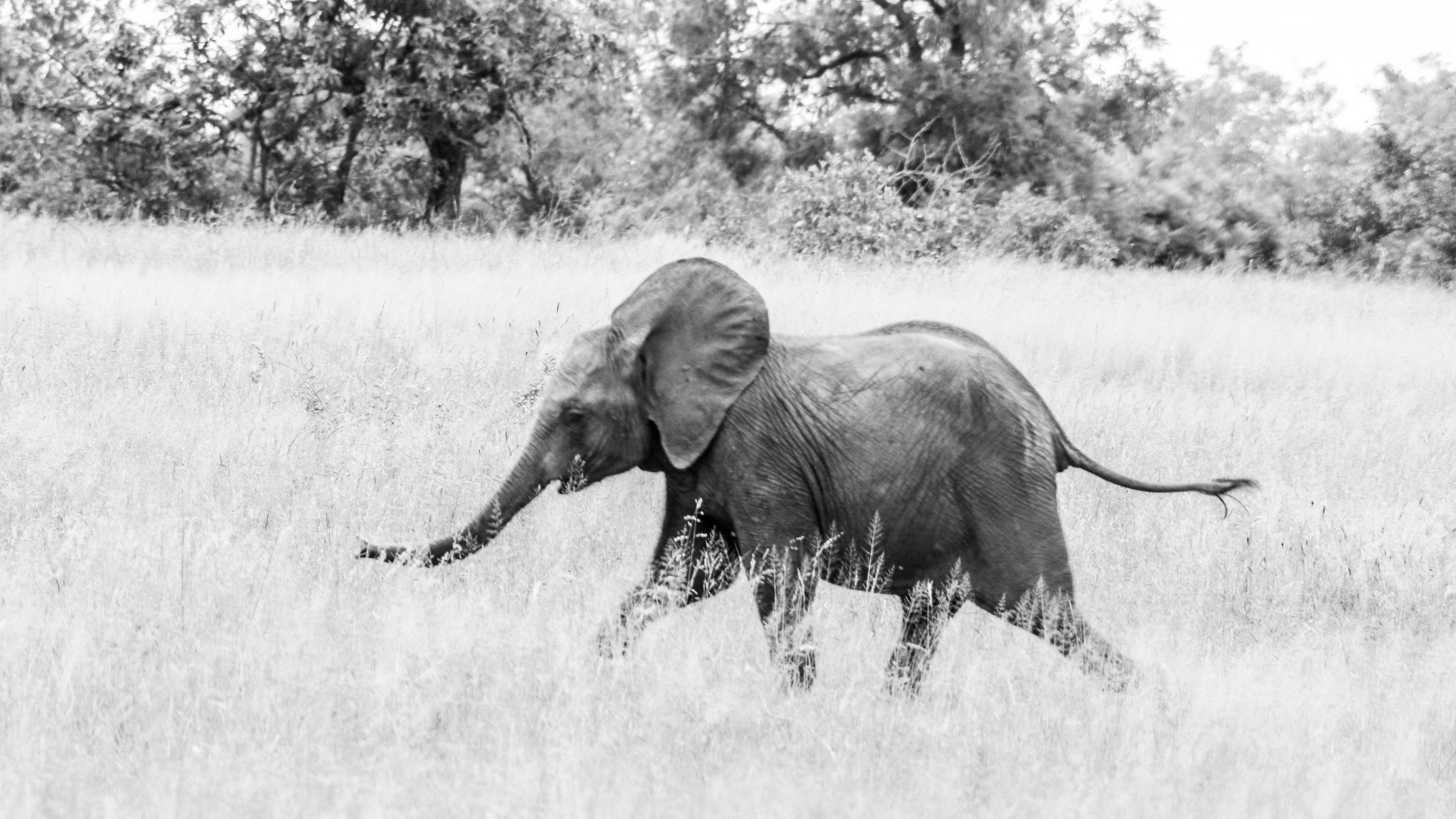 Обои: слоненок, Африканское животное, черно-белое фото - 3840x2160