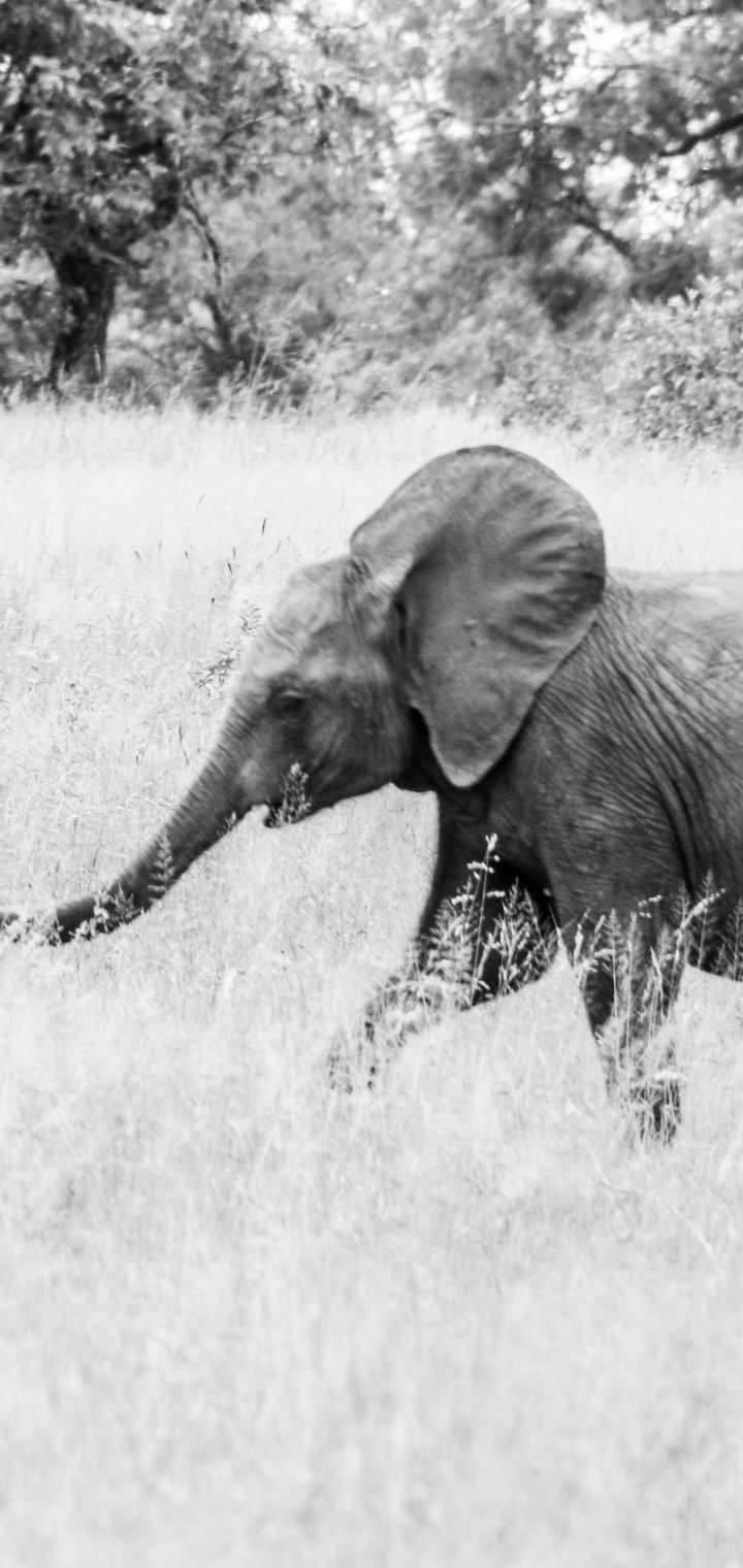 Обои: слоненок, Африканское животное, черно-белое фото - 720x1520