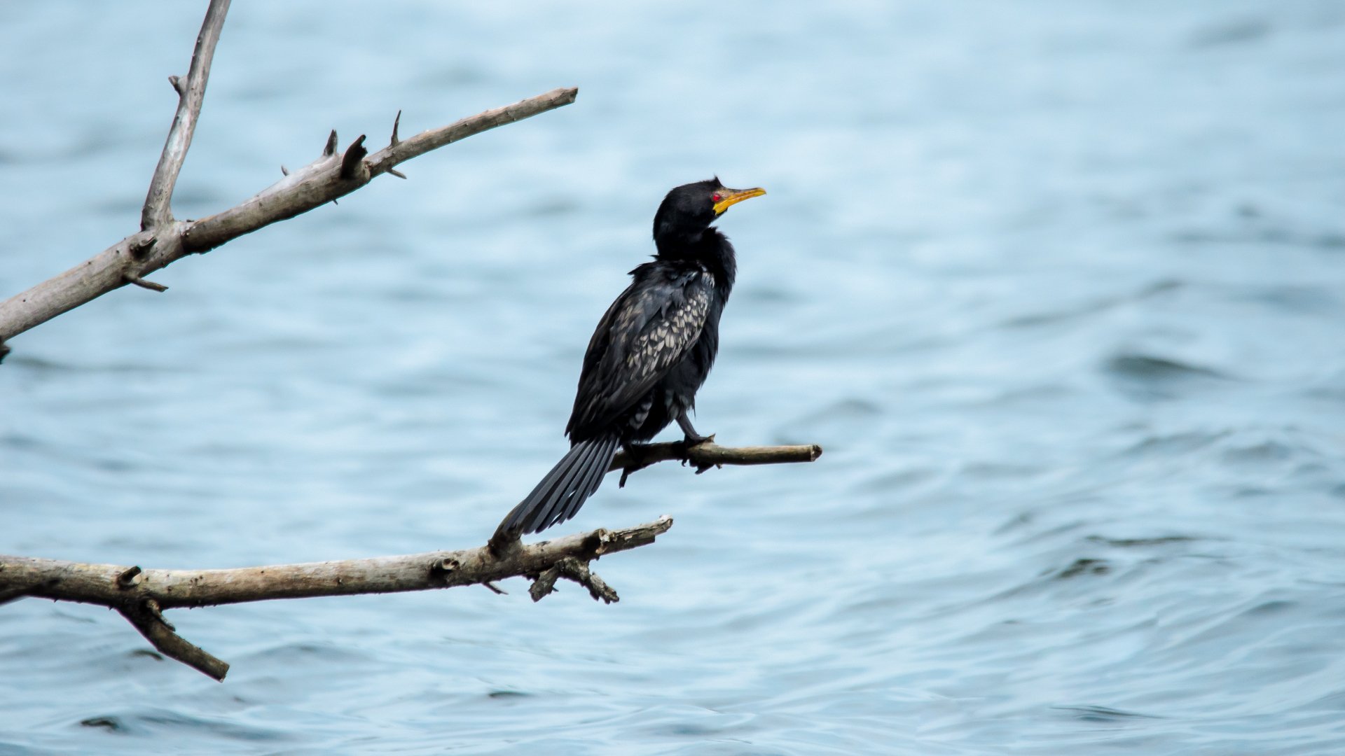 Обои: озеро, черная птица, красные глаза - 1920x1080