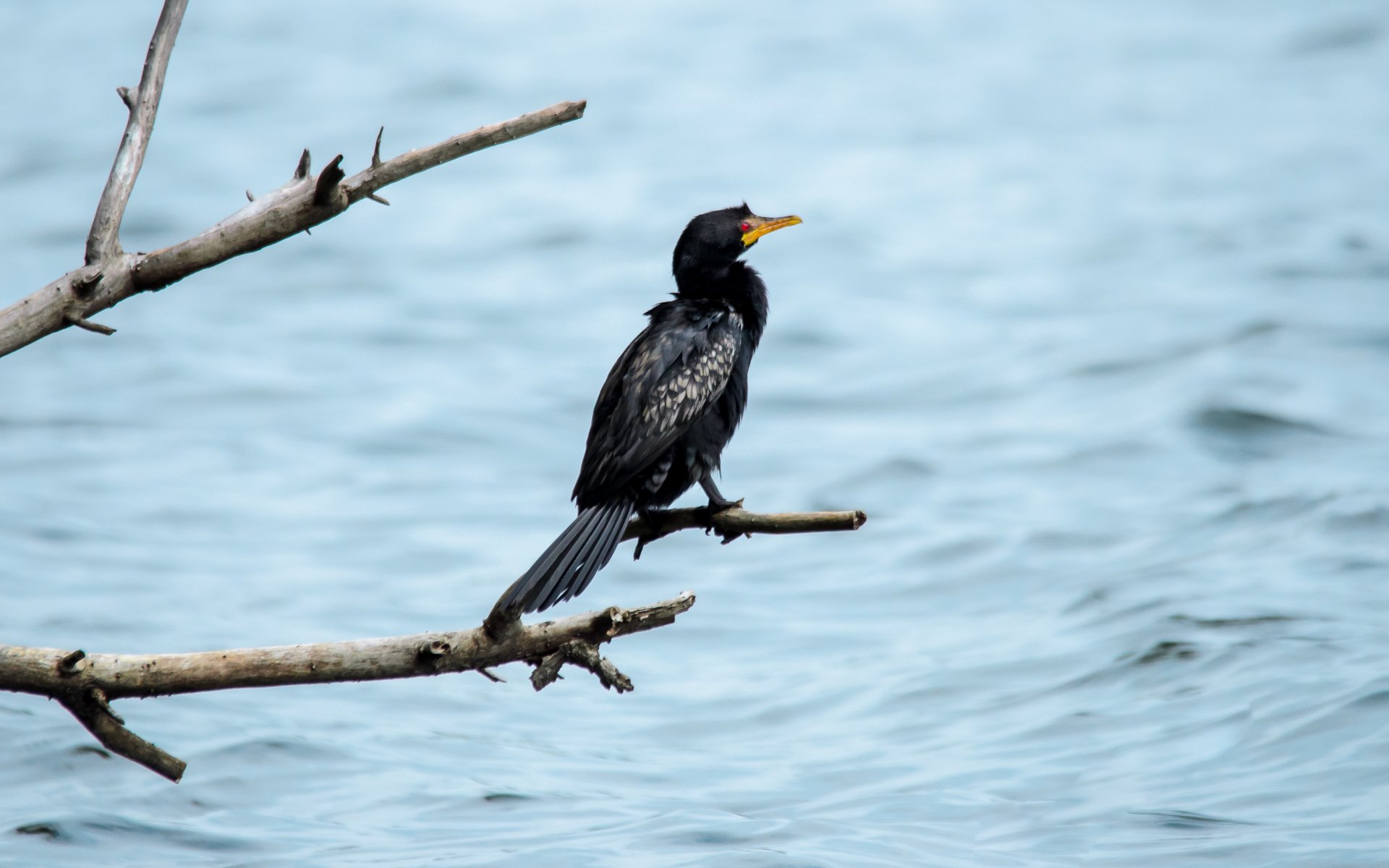 Обои: озеро, черная птица, красные глаза - 1920x1200