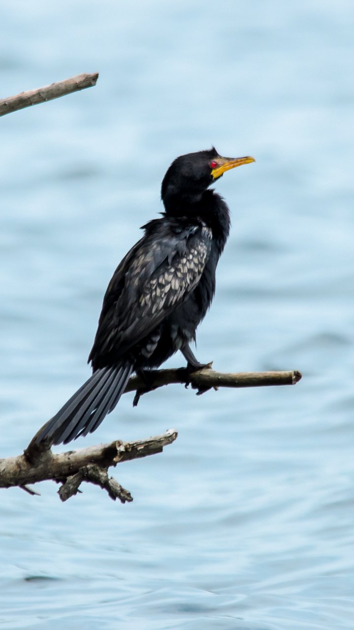 Обои: озеро, черная птица, красные глаза - 720x1280
