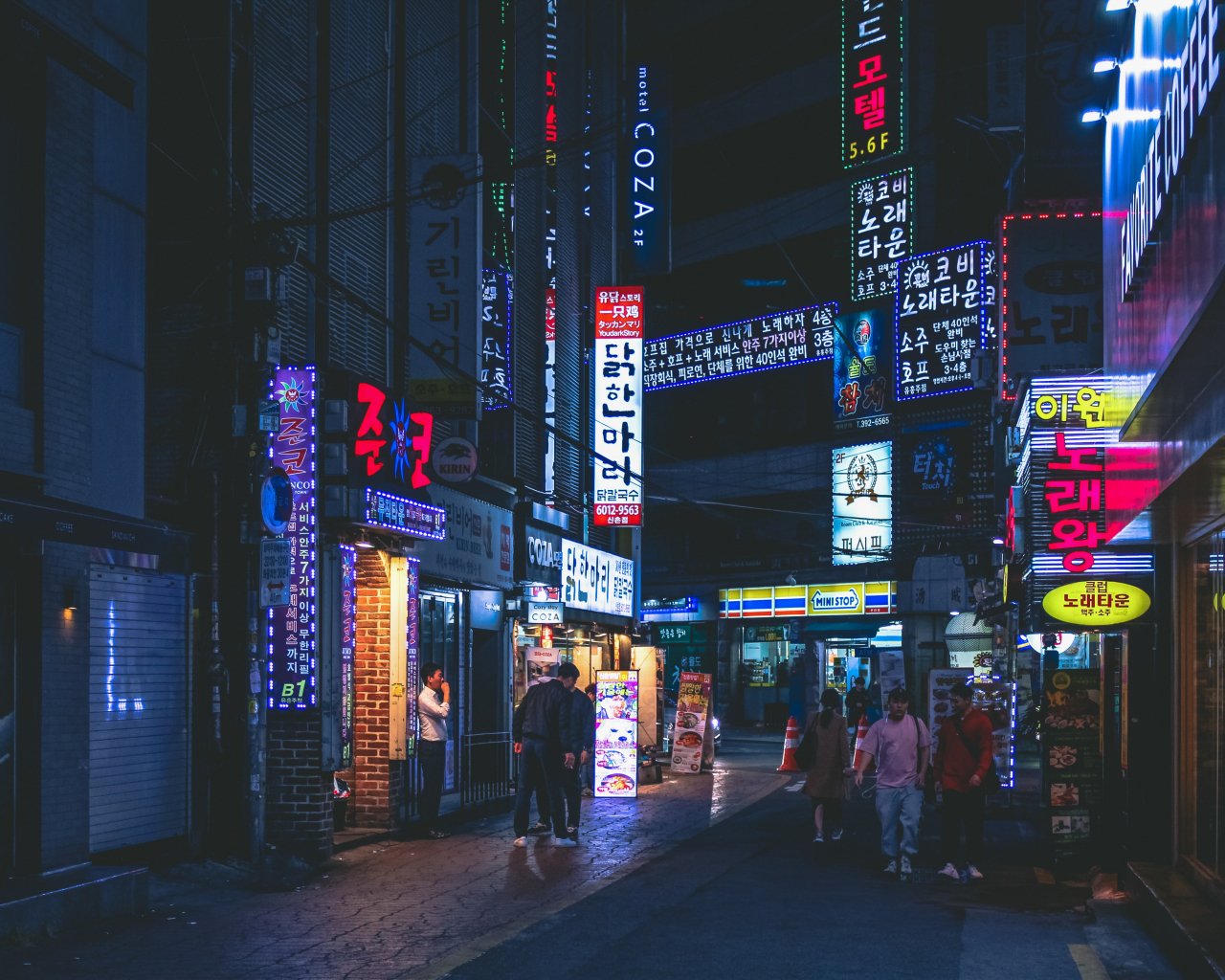 Обои: Сеул, Южная Корея, неон, ночной город, городской пейзаж - 1280x1024
