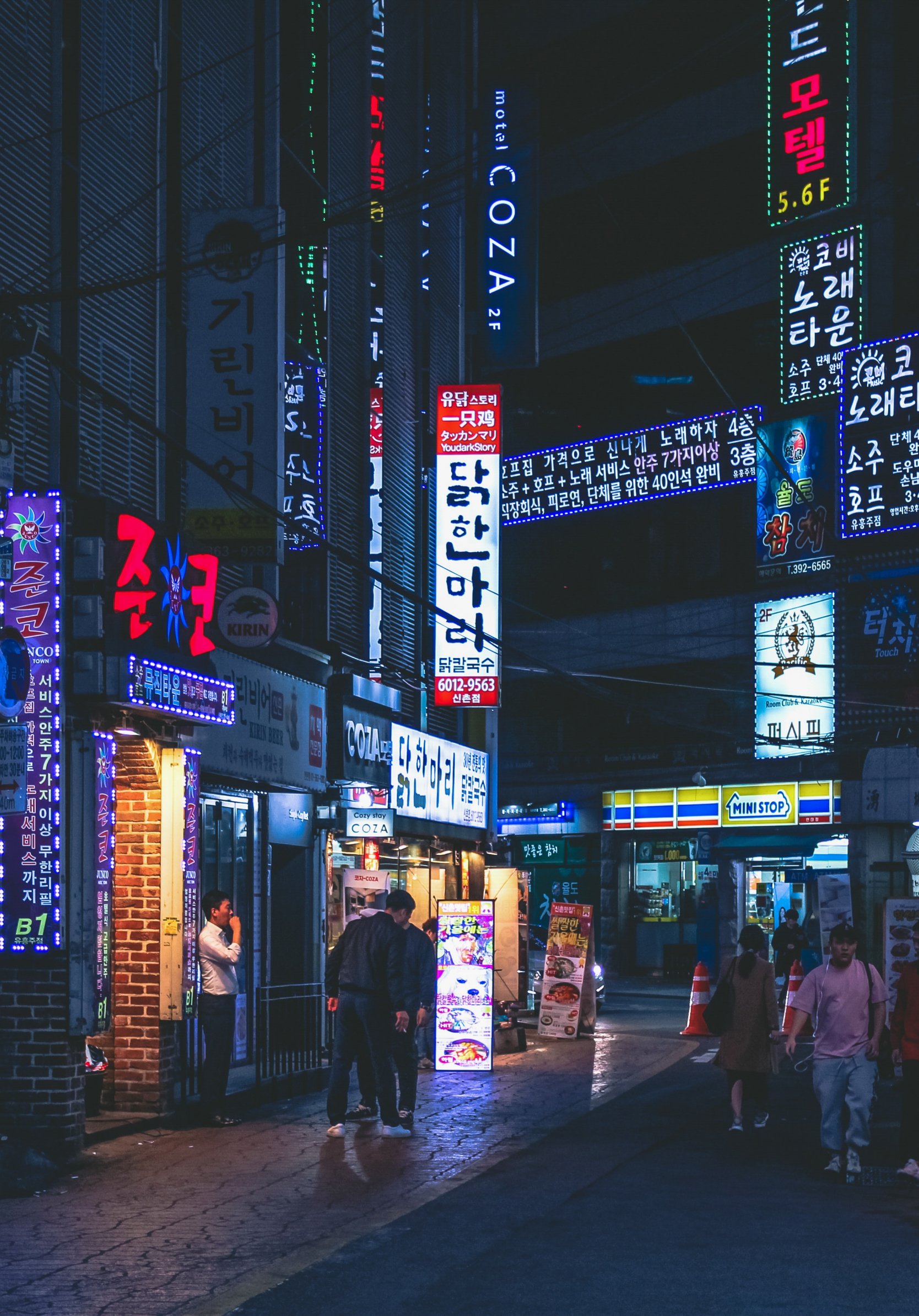 Обои: Сеул, Южная Корея, неон, ночной город, городской пейзаж - 1668x2388
