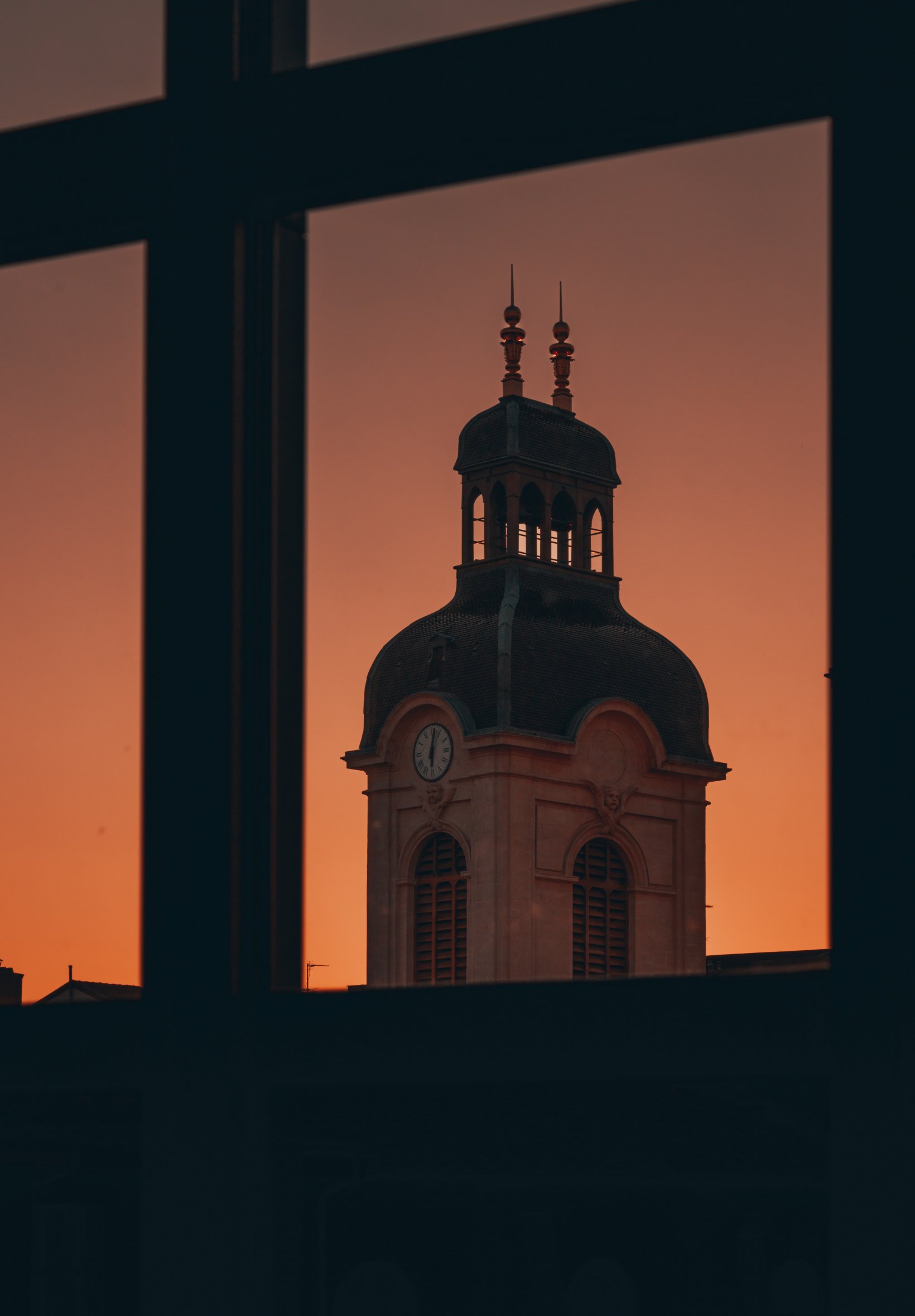 Лион, Франция, купола, пики, розовое небо