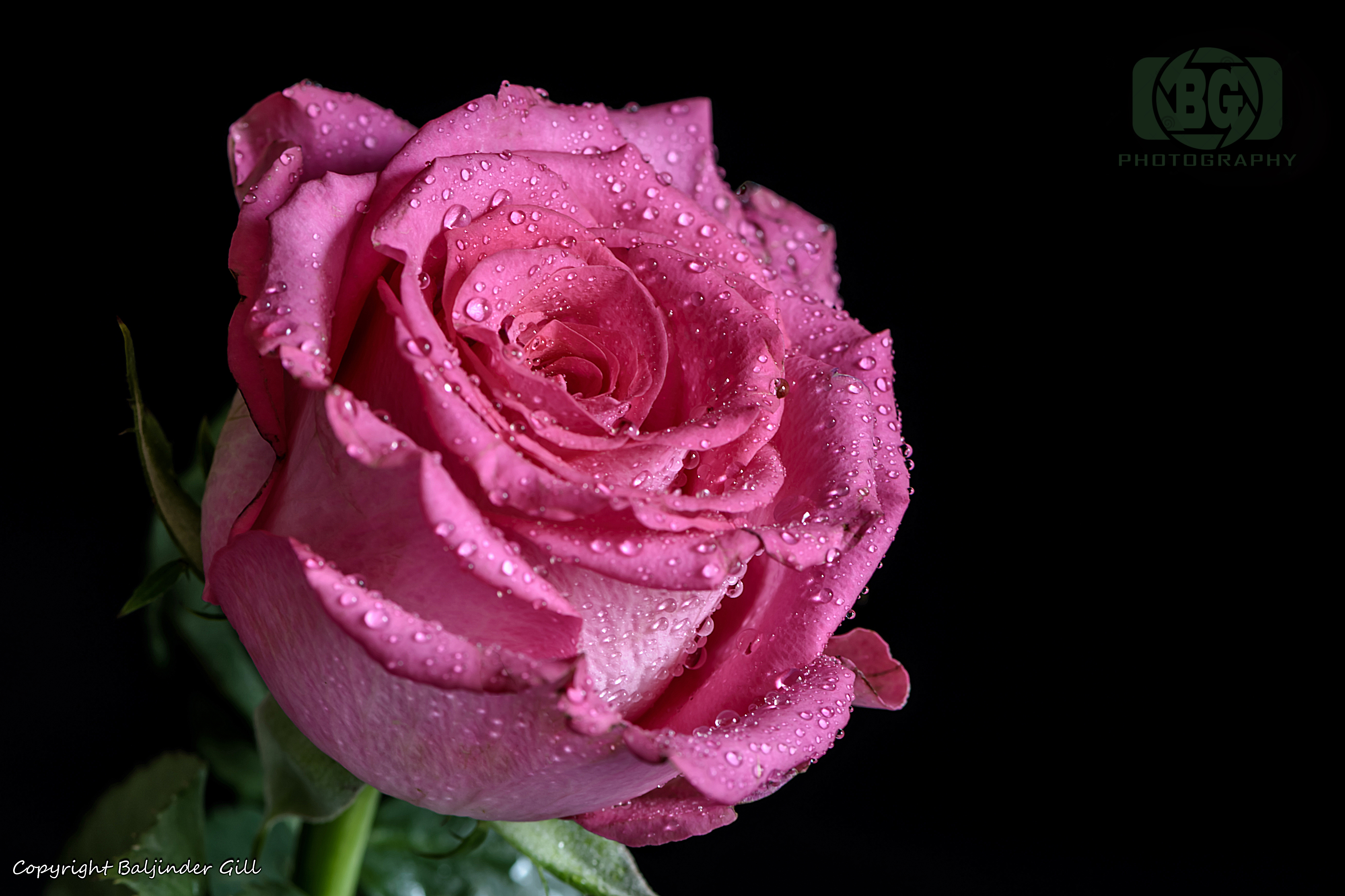 Обои: розовая роза, роза на черном фоне - 5531x3687