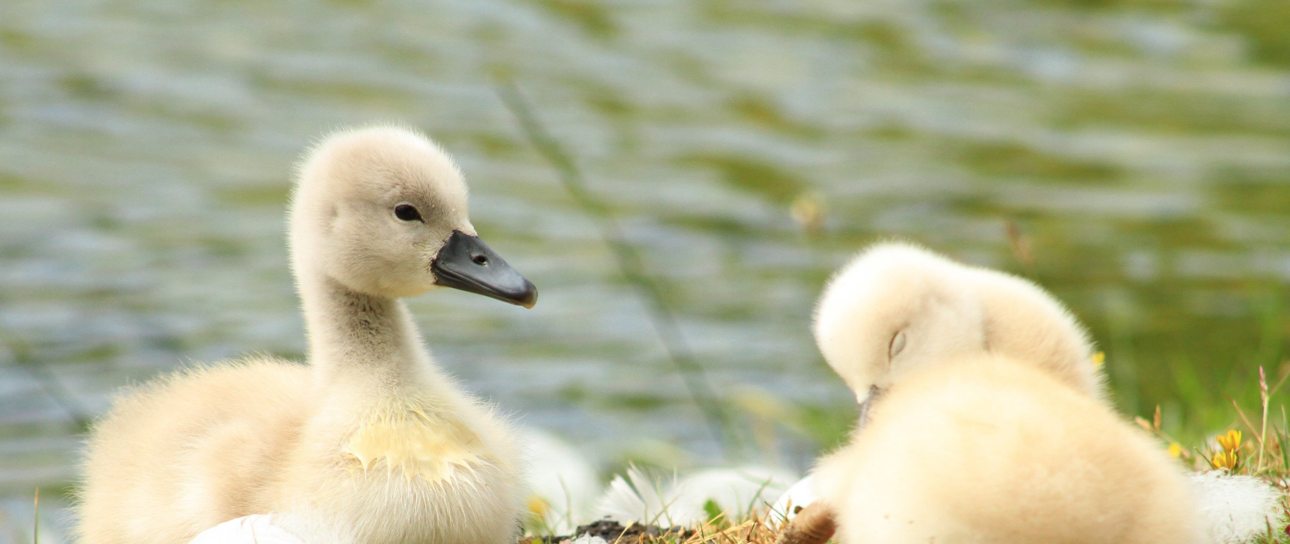 Обои: птенцы, утята, лебеди - 2560x1080