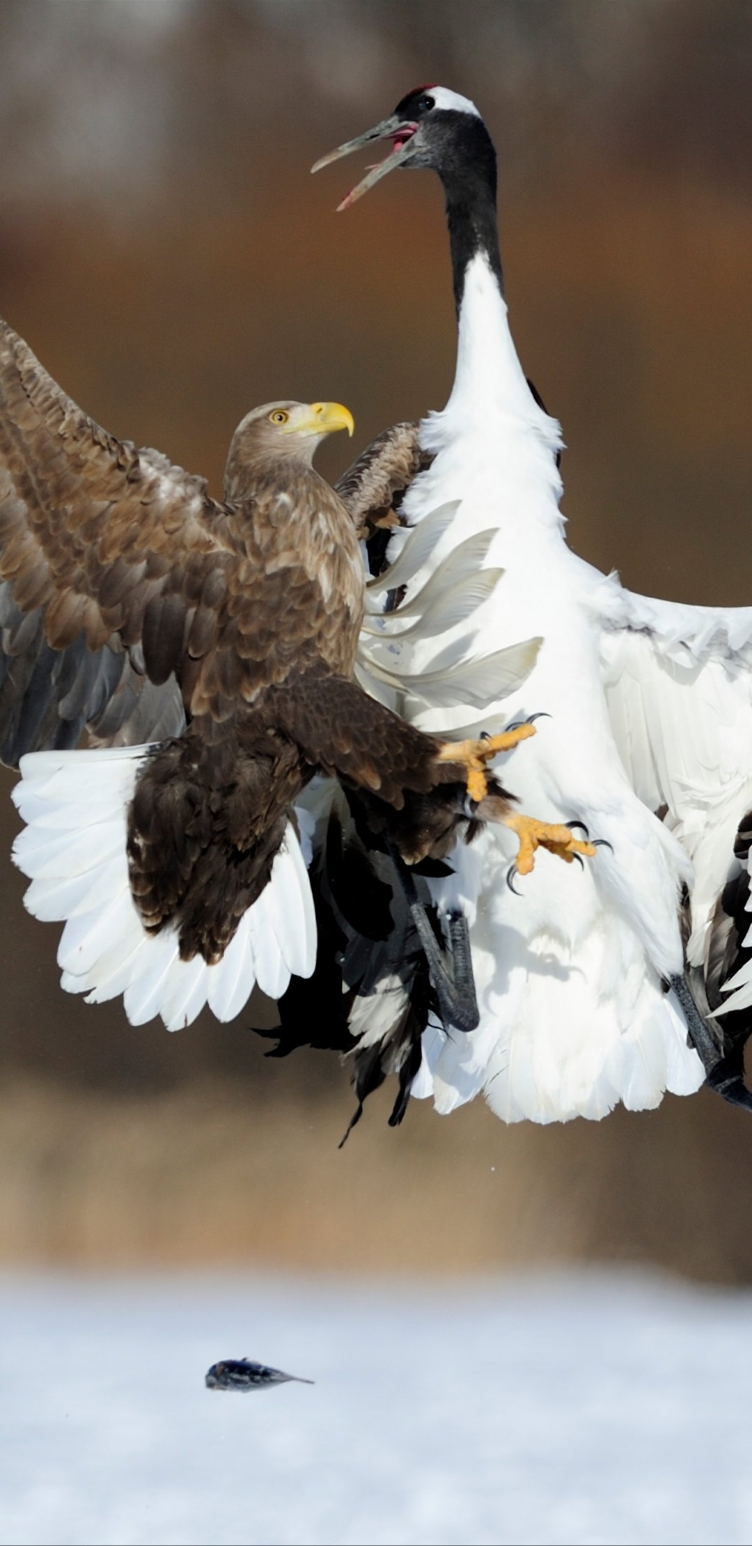 Обои: Цруи Мура, Япония, белоголовый орлан, журавль - 1080x2220