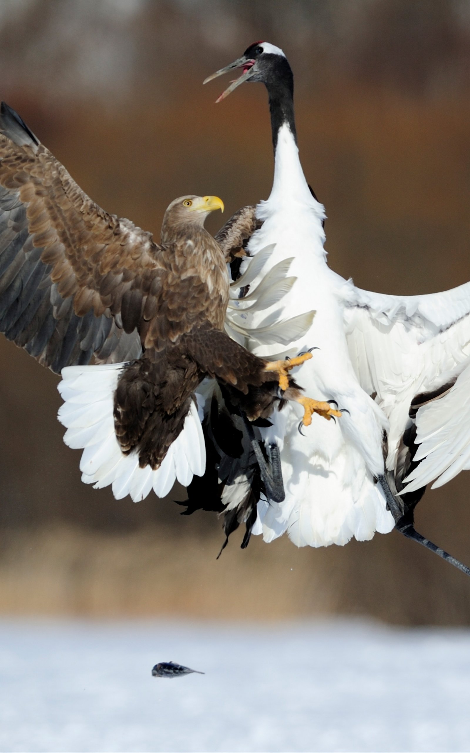 Обои: Цруи Мура, Япония, белоголовый орлан, журавль - 1600x2560