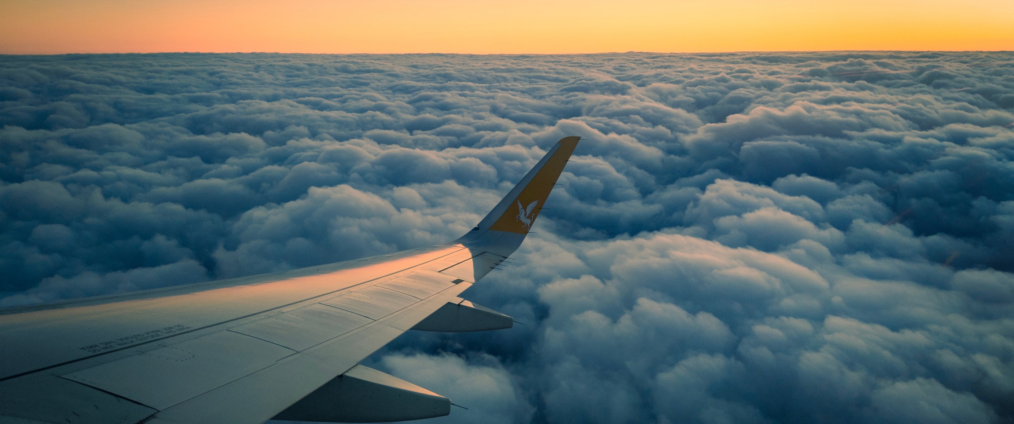 Обои: Рамадан, крыло самолета, над облаками - 3440x1440