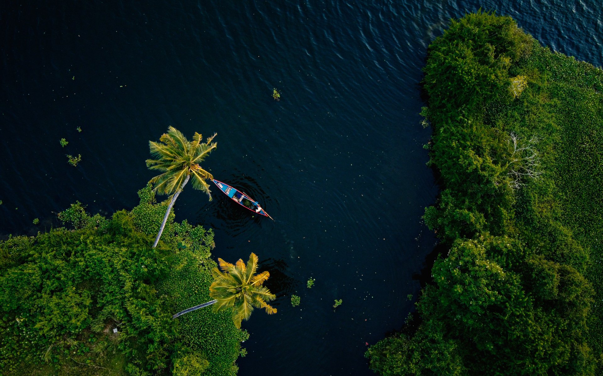 Обои: Алаппужа, Керала, Индия, пальмы, вода, транспорт - 1920x1200