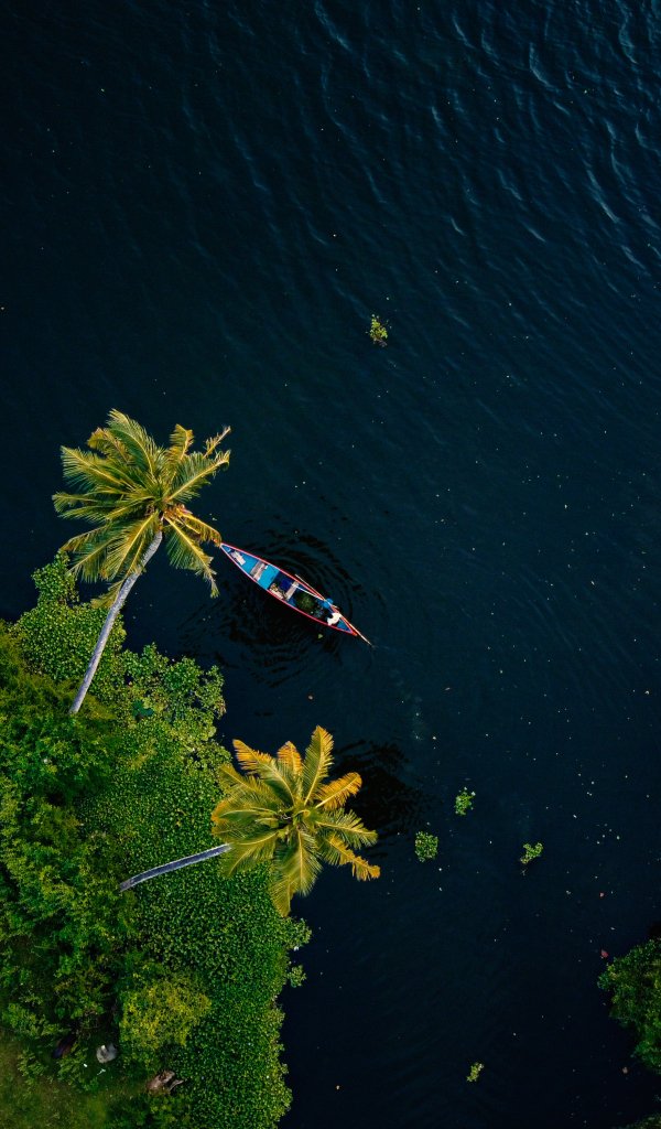 Обои: Алаппужа, Керала, Индия, пальмы, вода, транспорт - 600x1024