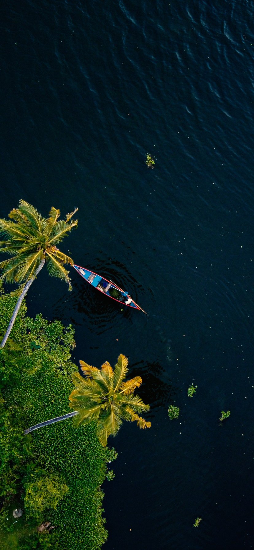 Обои: Алаппужа, Керала, Индия, пальмы, вода, транспорт - 828x1792
