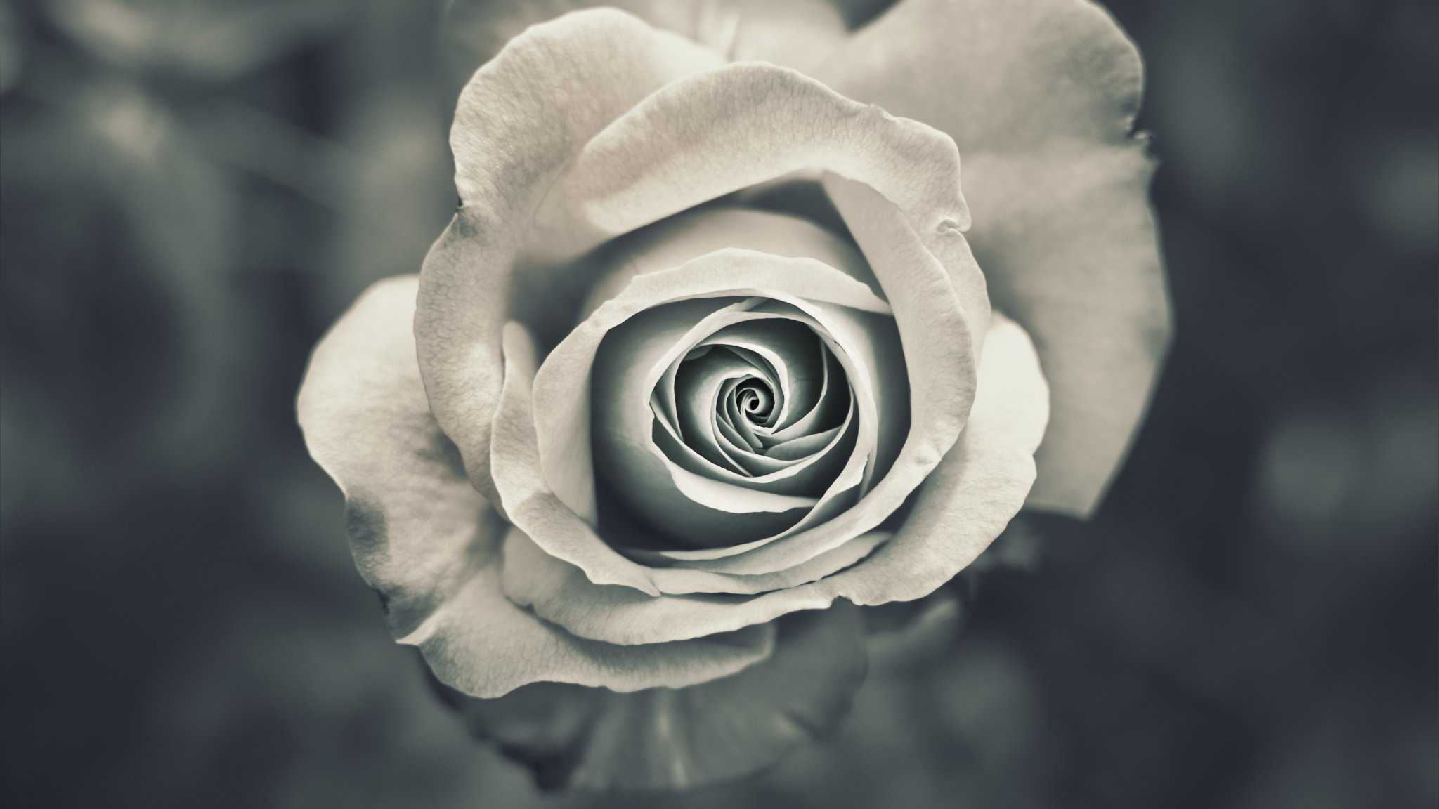 Обои: белая роза, черное и белое - 2048x1152