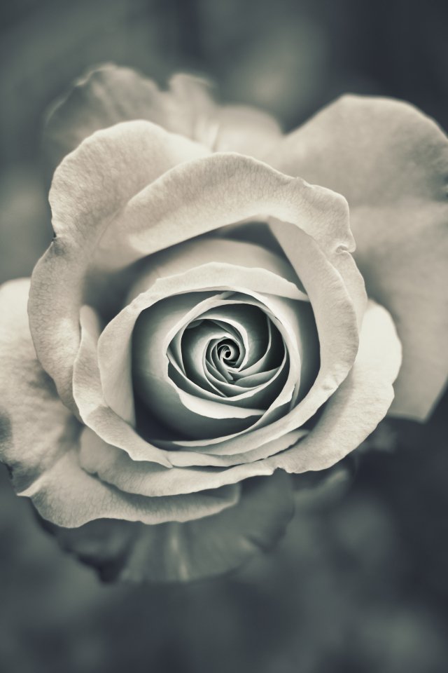 Обои: белая роза, черное и белое - 640x960