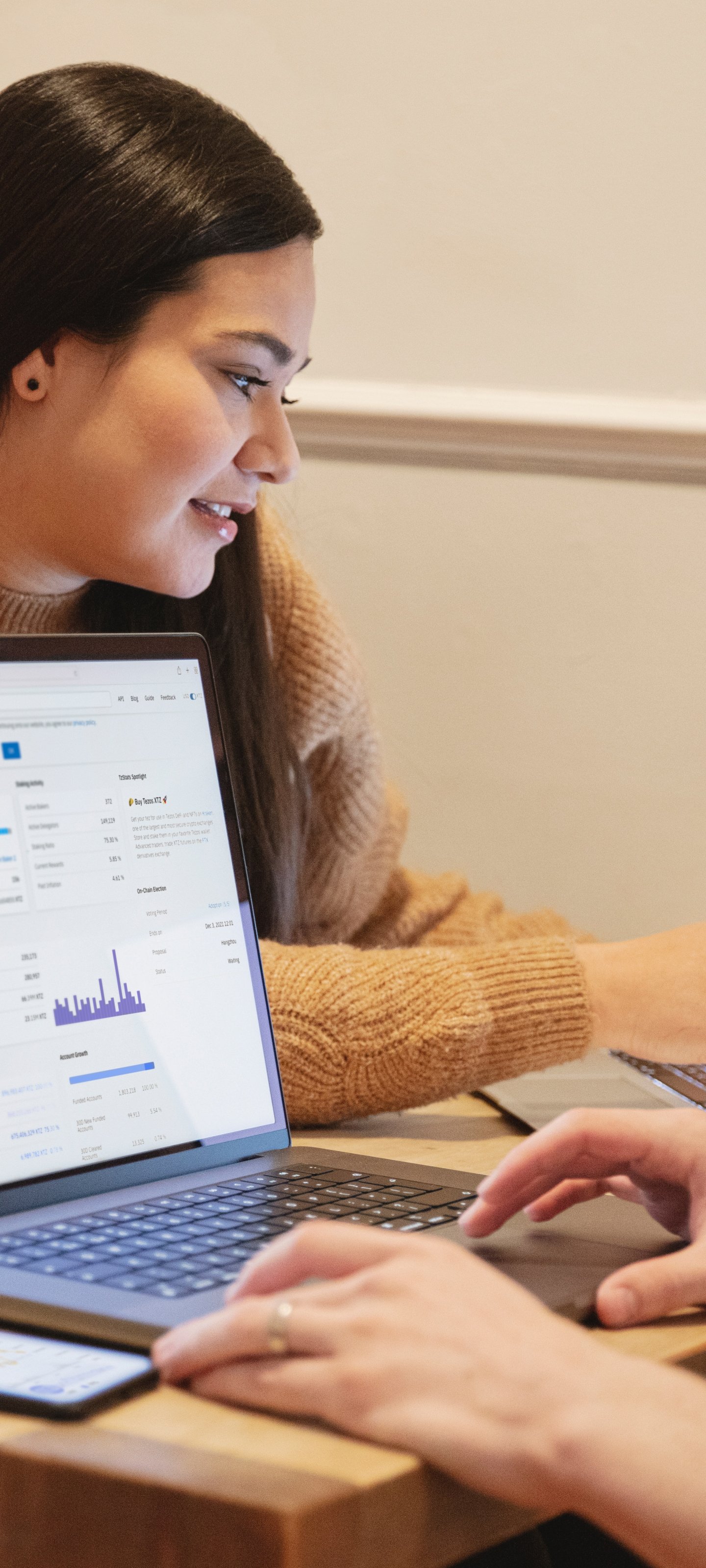 Обои: образование, парень с девушкой, работа за компьютером - 1440x3200