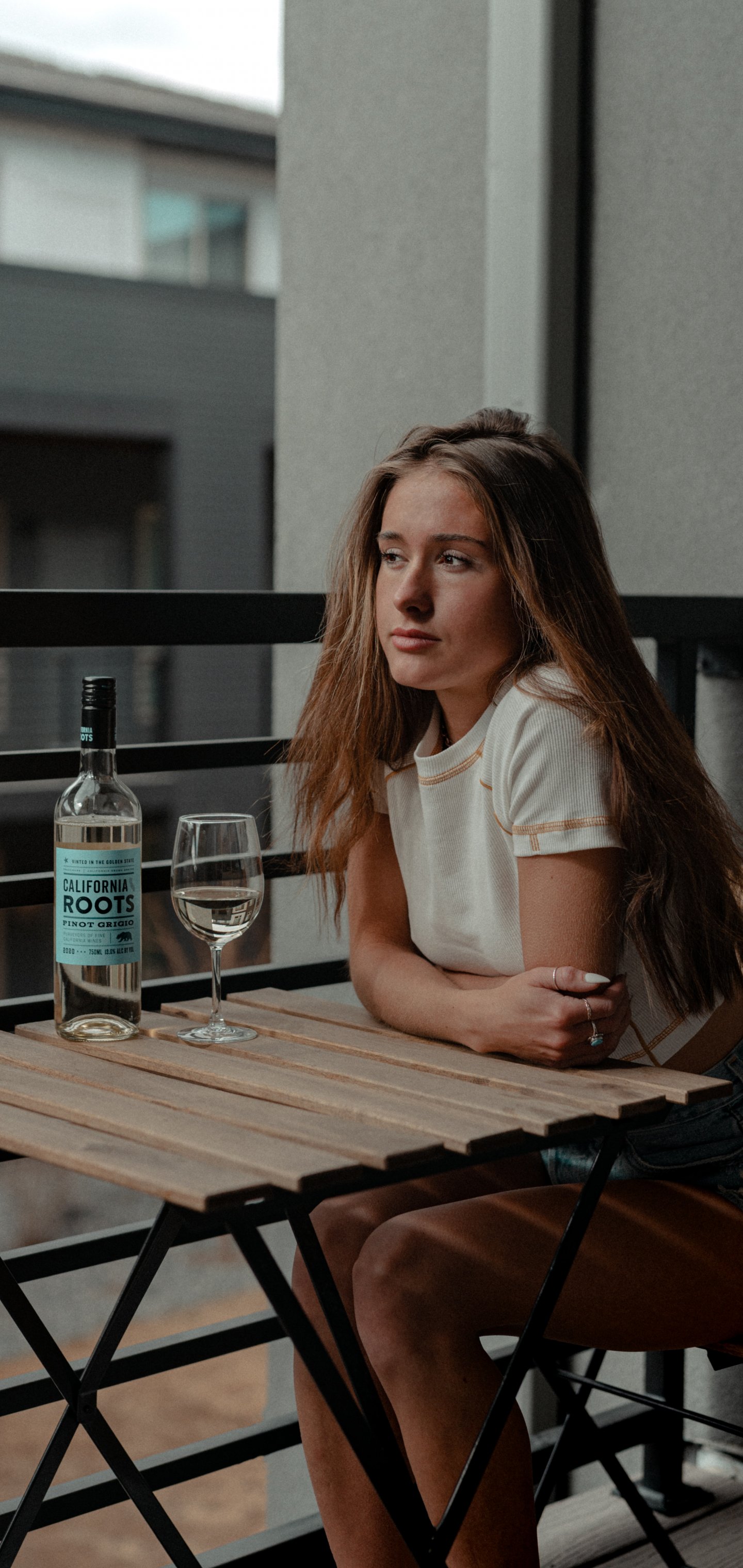 Обои: девушка, балкон, бутылка вина - 1440x3040