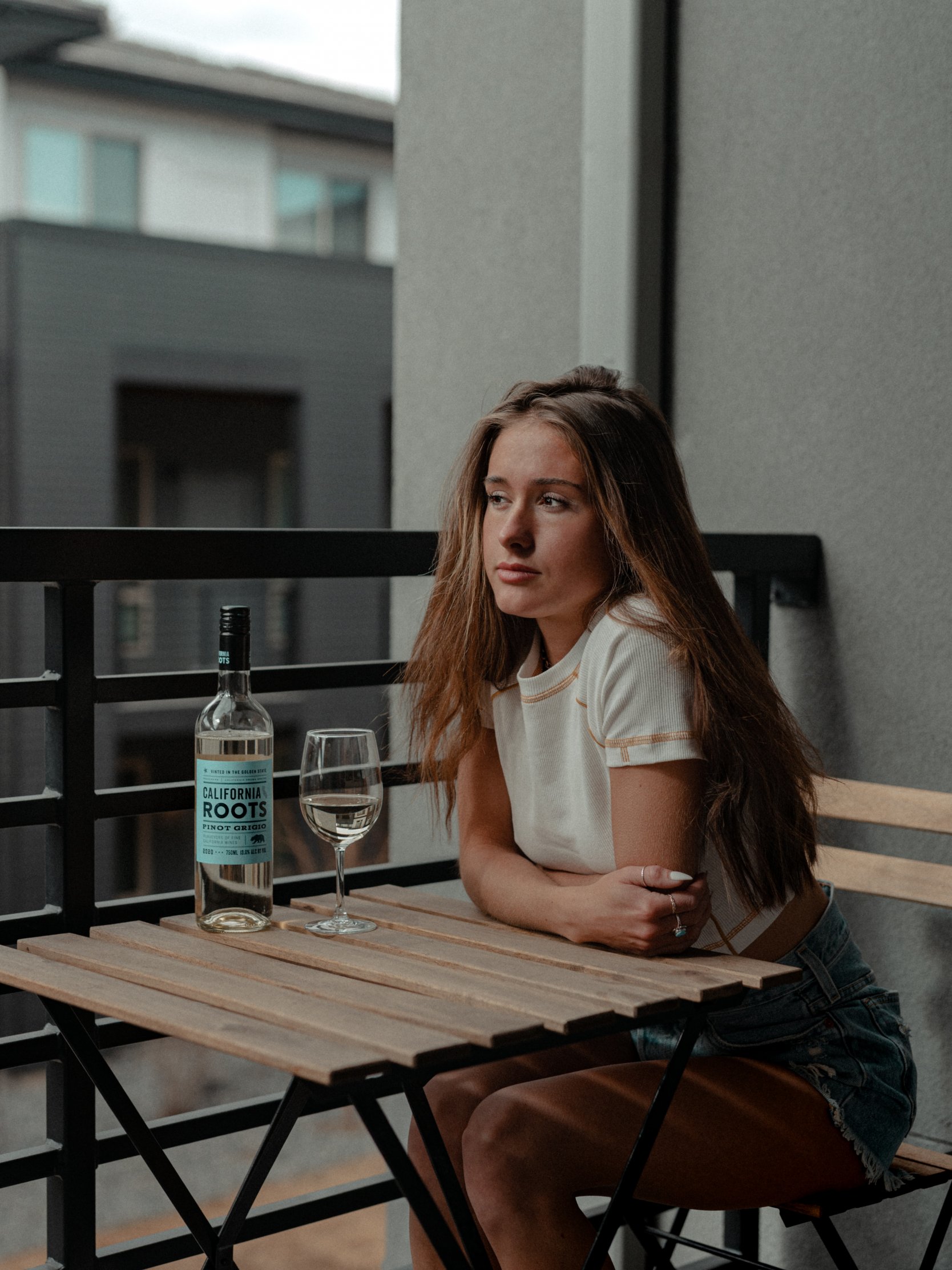 Обои: девушка, балкон, бутылка вина - 1668x2224