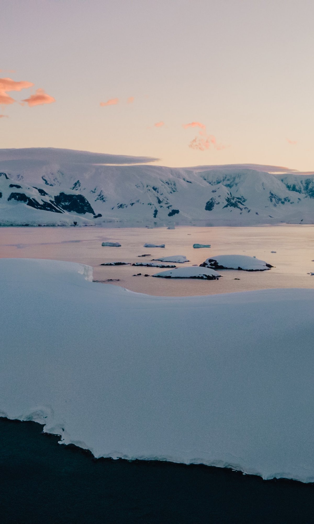 Обои: Антарктида, озеро, горные сопки - 1200x2000