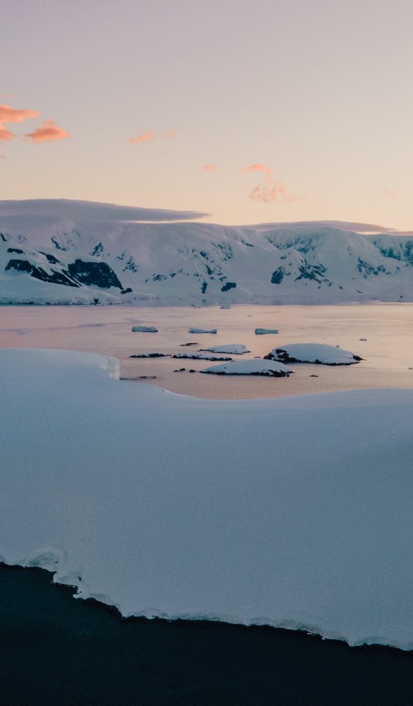Обои: Антарктида, озеро, горные сопки - 600x1024