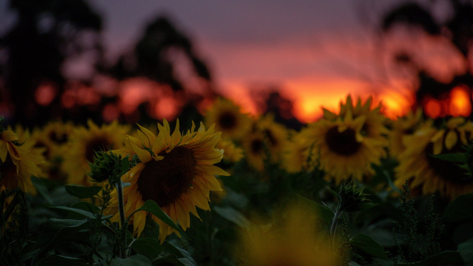 Обои: поле подсолнухов, закат, рассвет - 1600x900