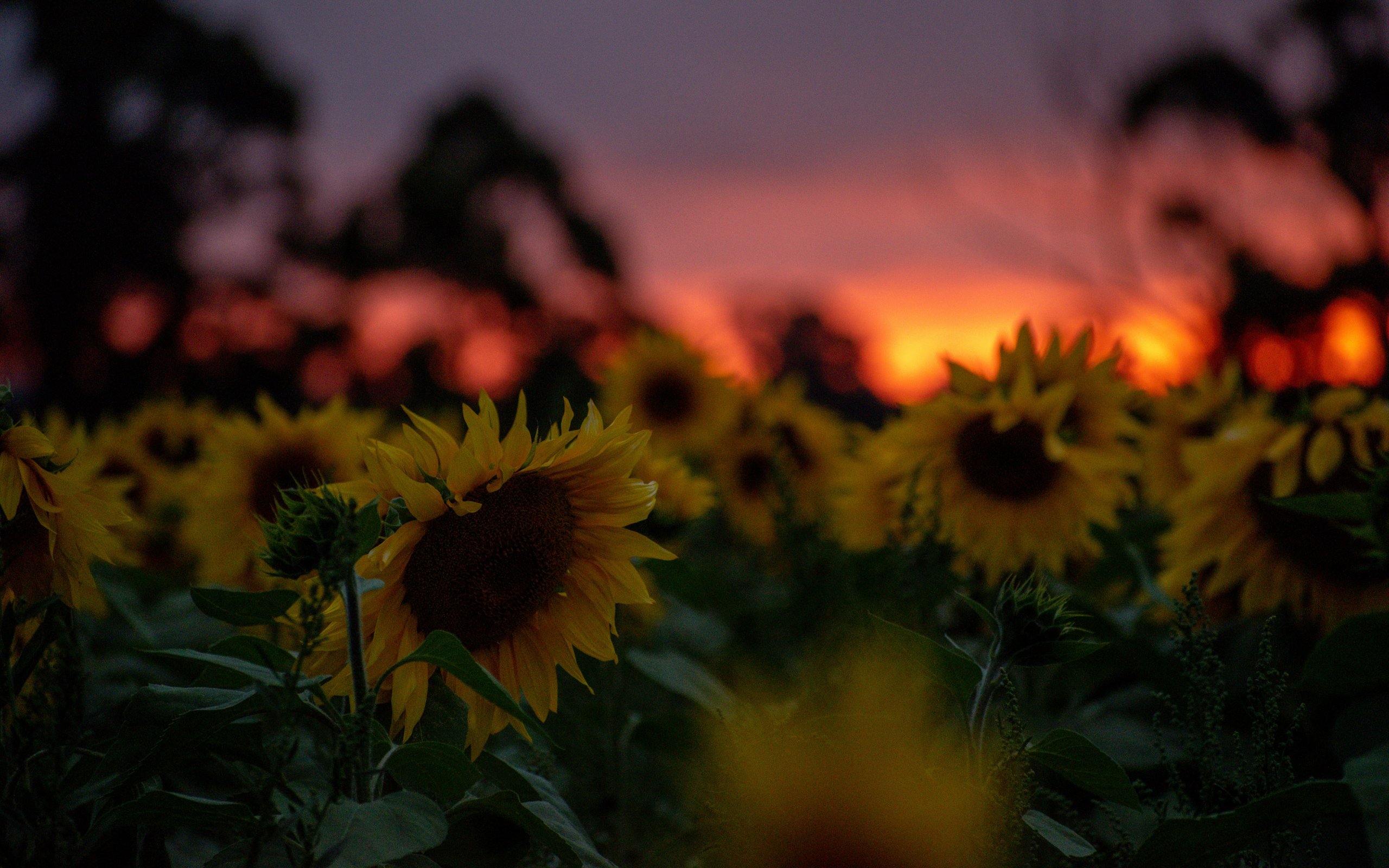 Обои: поле подсолнухов, закат, рассвет - 2560x1600