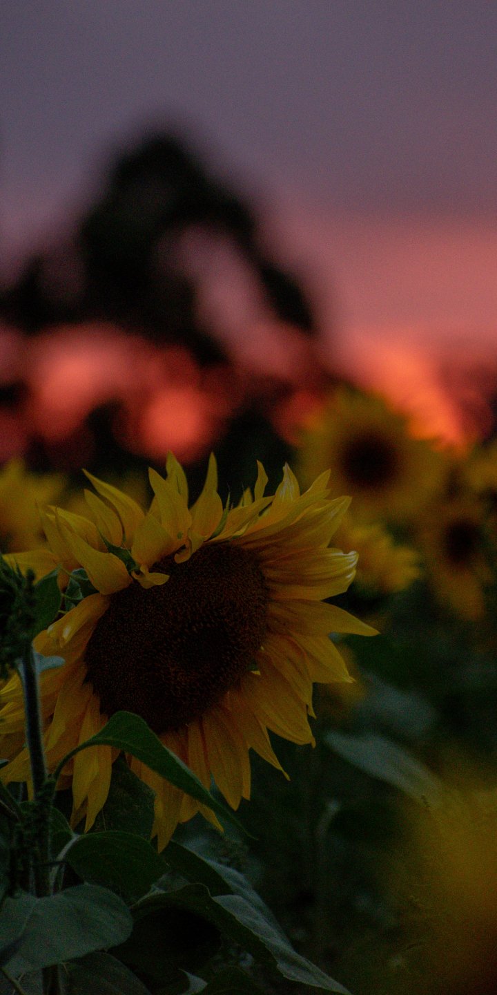 Обои: поле подсолнухов, закат, рассвет - 720x1440