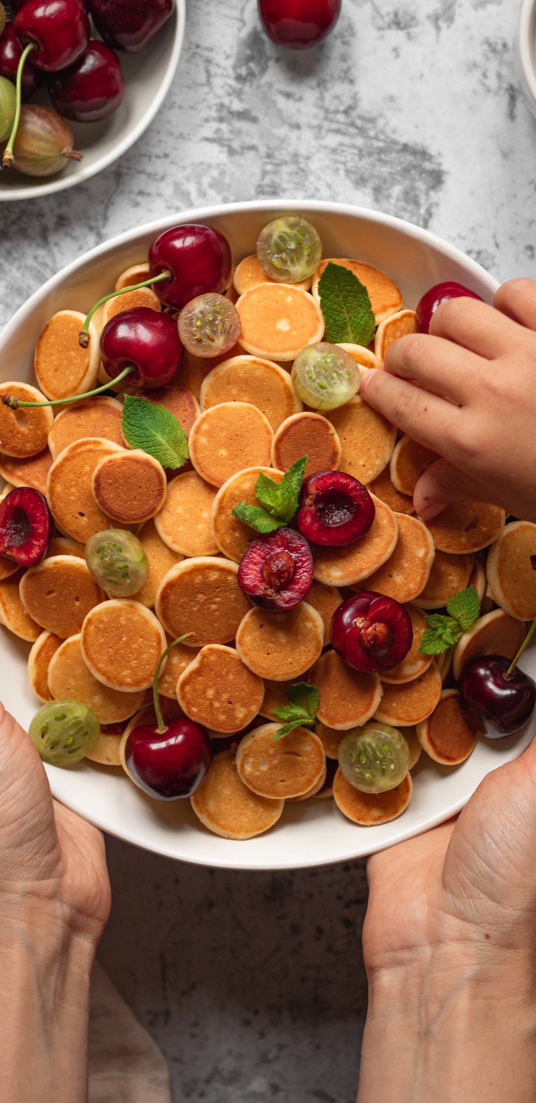 Обои: завтрак, оладьи, фрукты - 1080x2220