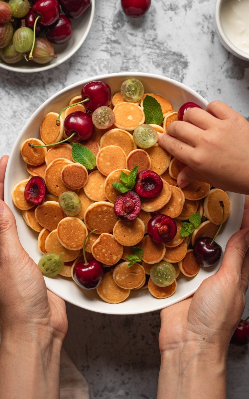 Обои: завтрак, оладьи, фрукты - 800x1280