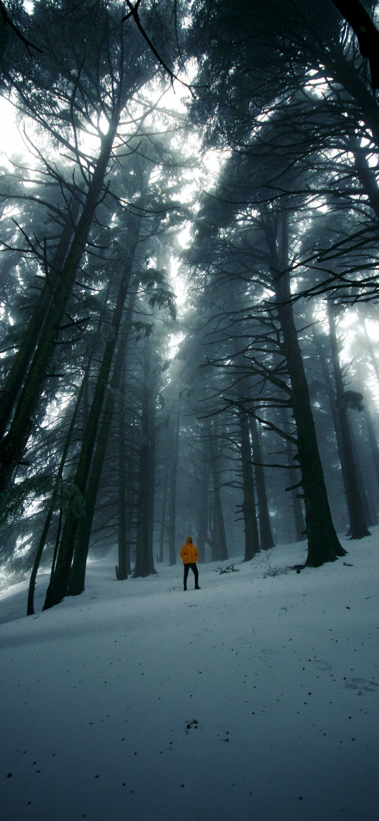 Обои: лес, зима, высокие деревья - 1242x2688