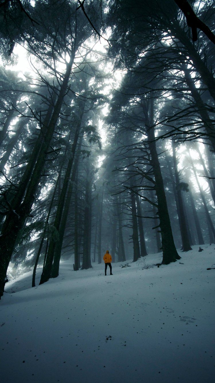 Обои: лес, зима, высокие деревья - 750x1334