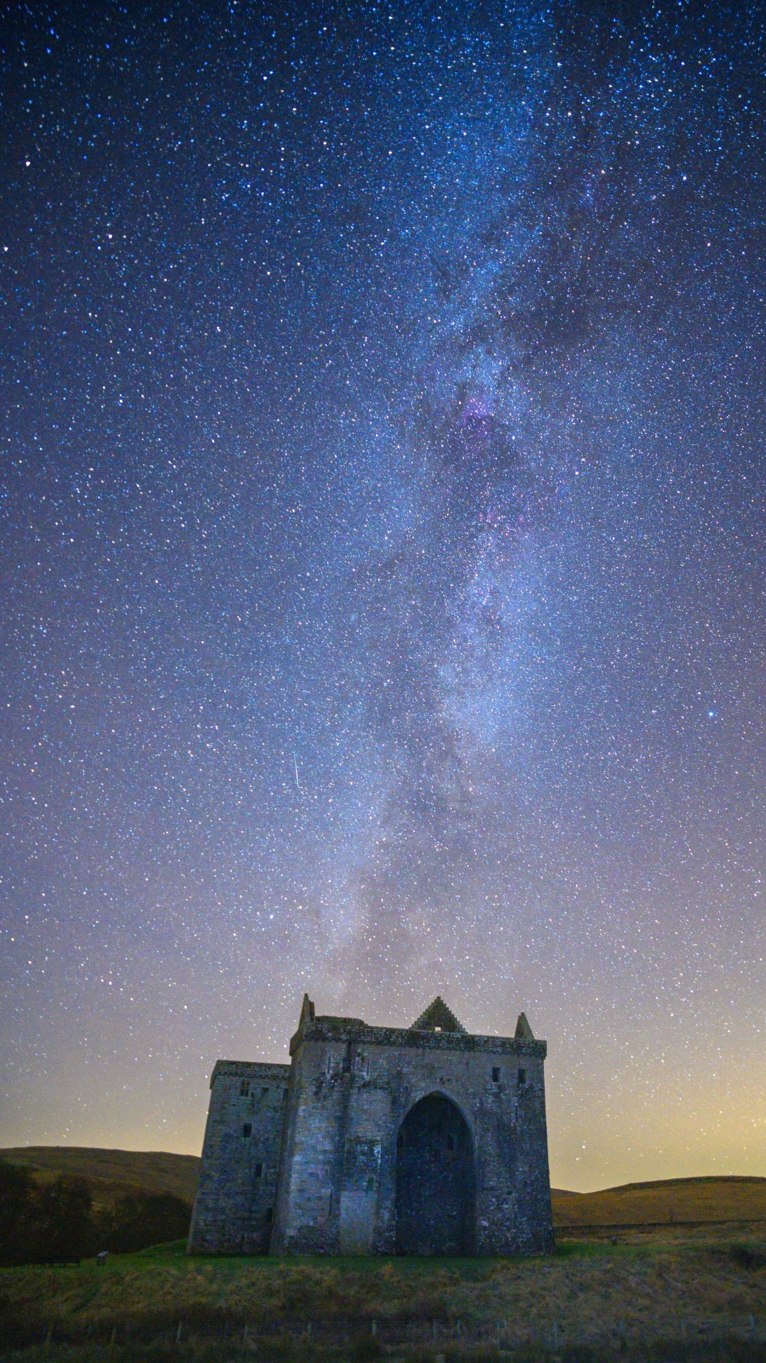 Обои: звездное небо, млечный путь, замок - 1080x1920