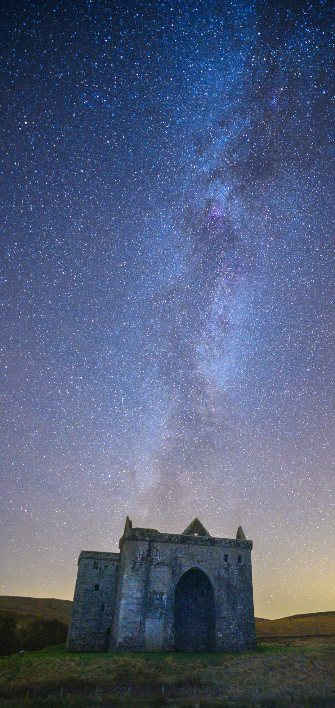 Обои: звездное небо, млечный путь, замок - 1080x2280
