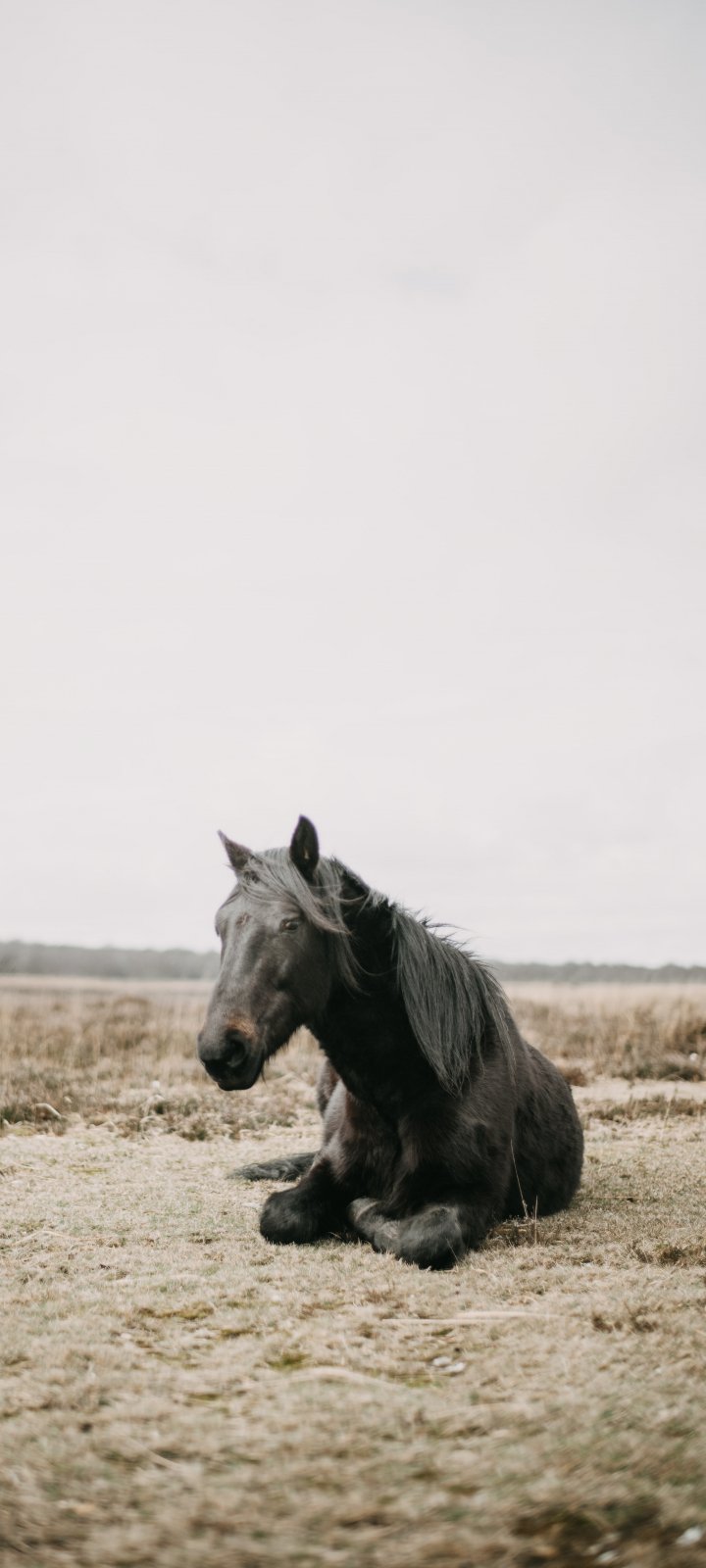 Обои: конь, черный, степь - 720x1600
