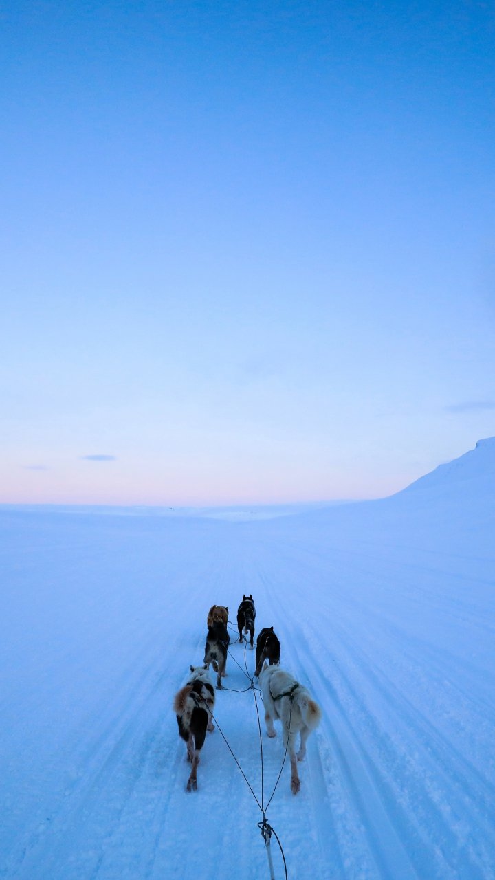 Обои: Шпицберген, Шпицберген и Ян-Майен, езда на собаках - 720x1280