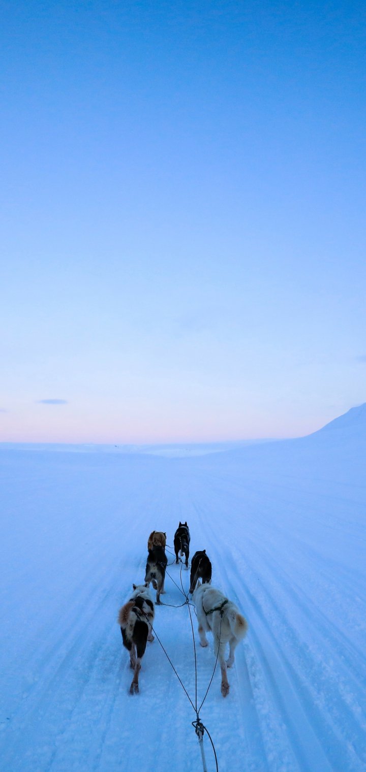 Обои: Шпицберген, Шпицберген и Ян-Майен, езда на собаках - 720x1520