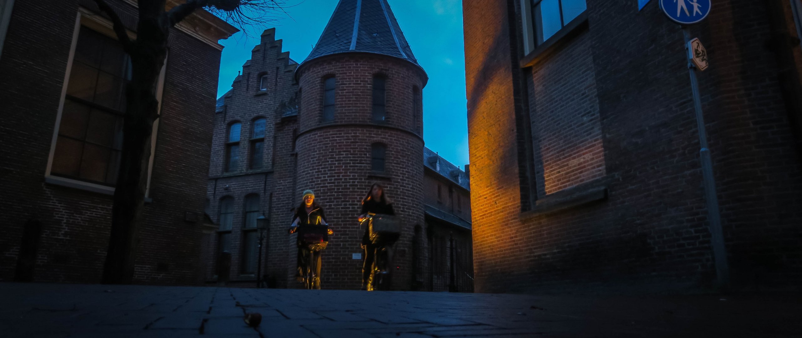 Обои: Европейский городок, мощенная улица - 2560x1080