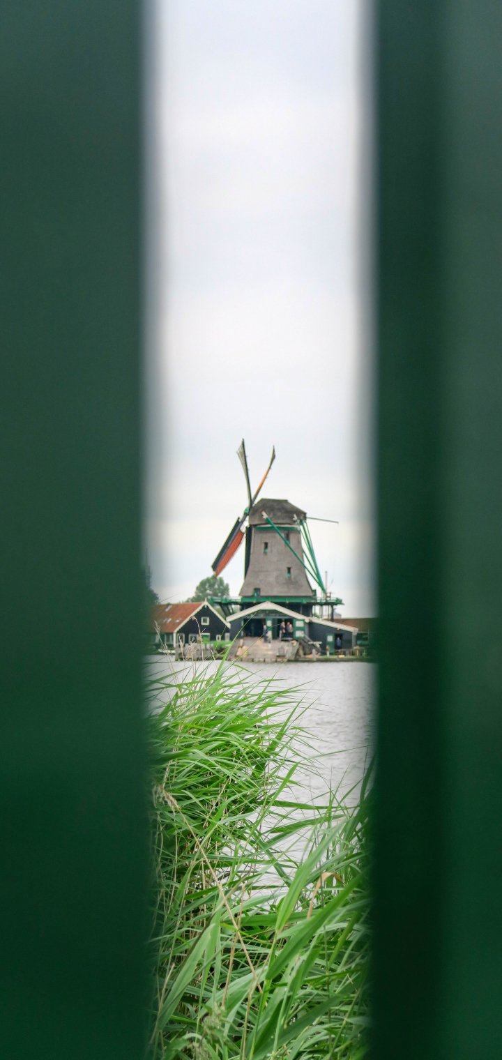 Обои: Заансе Сханс, Зандам, Нидерланды, мельница вдалеке - 720x1520