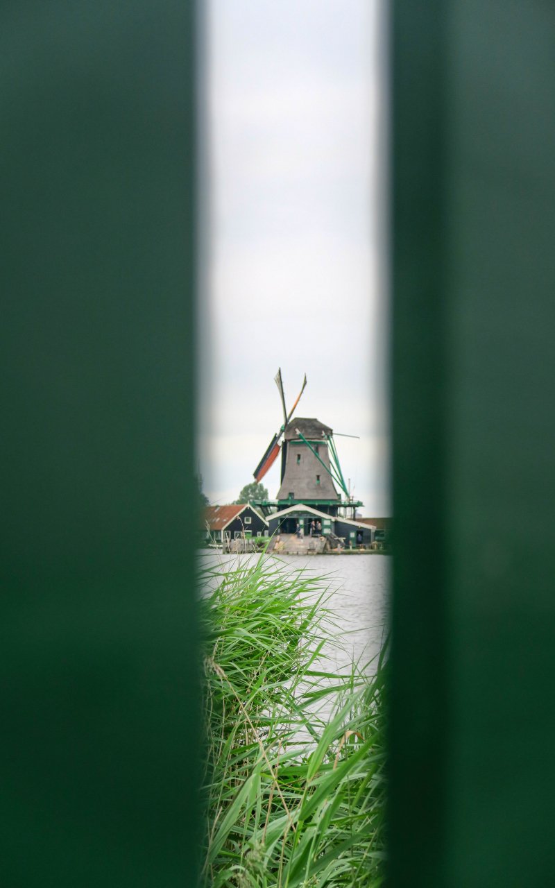 Обои: Заансе Сханс, Зандам, Нидерланды, мельница вдалеке - 800x1280