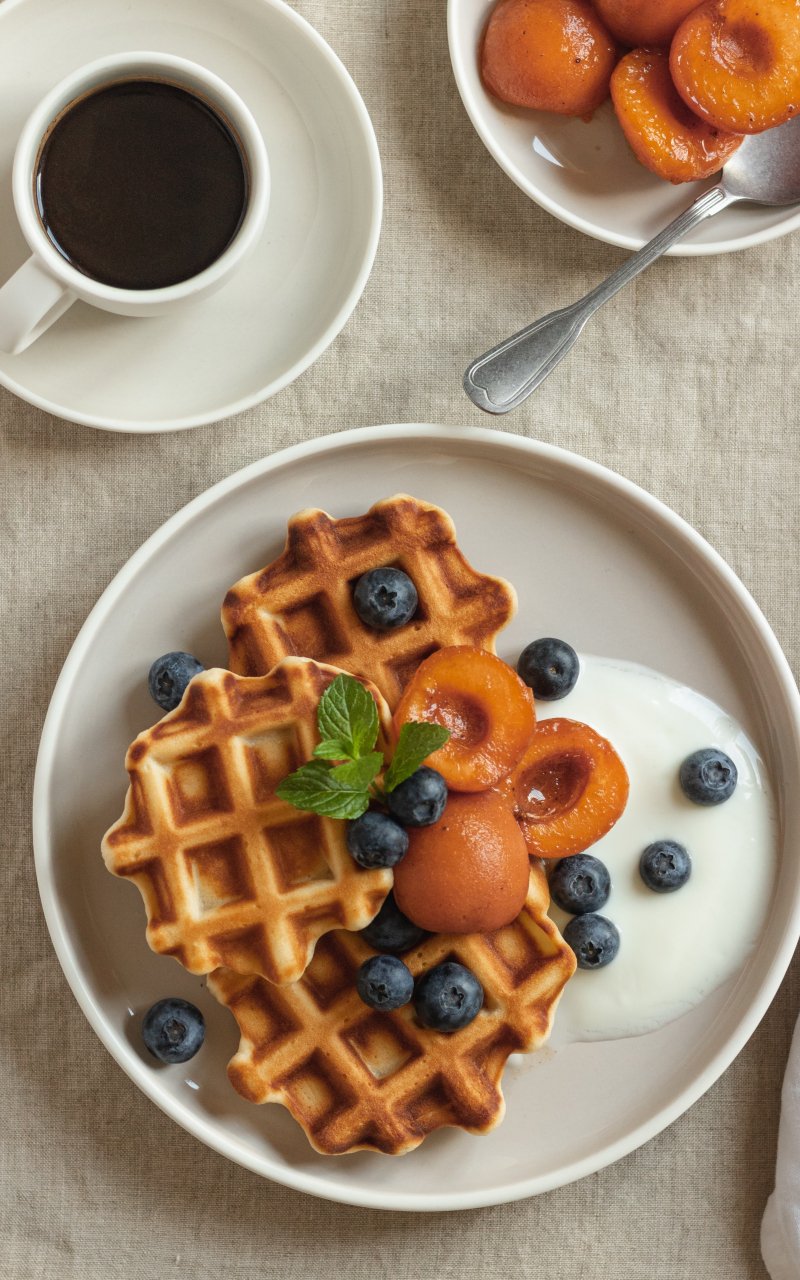 Обои: кофе, завтрак, вафли - 800x1280